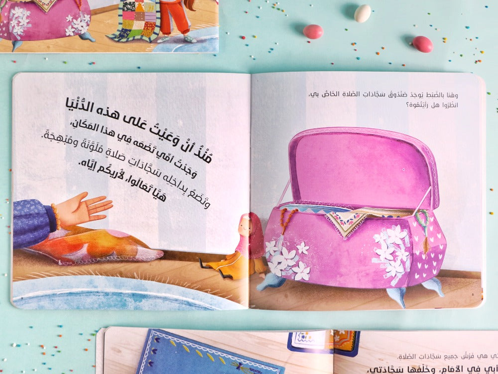 أحِبُّ صَلاةَ الجَمَاعَةِ مَعَ عَائلَتِي كثيرًا، وأتَوَضَّأ قَبْلَ الجَميعِ، وأفْرِشُ سَجَّادَةَ الصَّلَاةِ الخَاصَّةَ بي، وأيضًا سَجَّادَاتِ أبي، وأمِّي، وأختِي الكُبْرَى...