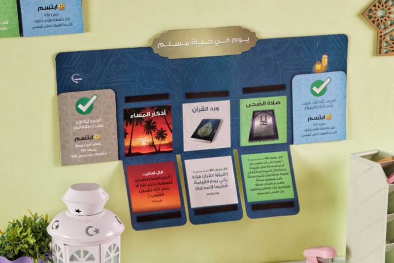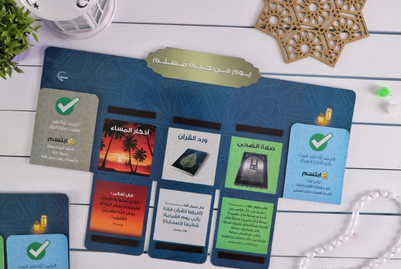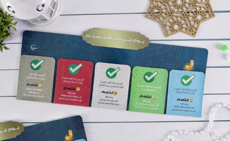 مقسمة إلى 5 خانات تشمل العبادات اليومية الهامة في يوم المسلم