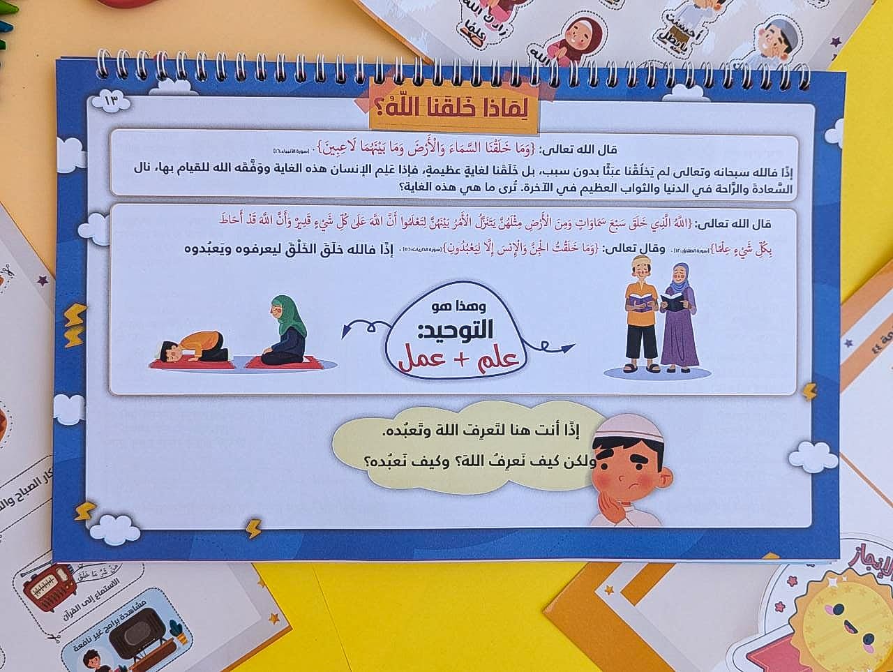 مرفق مع الكتاب ثلاث صفحات من الستيكرز، بعضها يتم إستعمالها داخل أنشطة في الكتاب، وأخرى ستيكرز تحفيزية للطفل.
