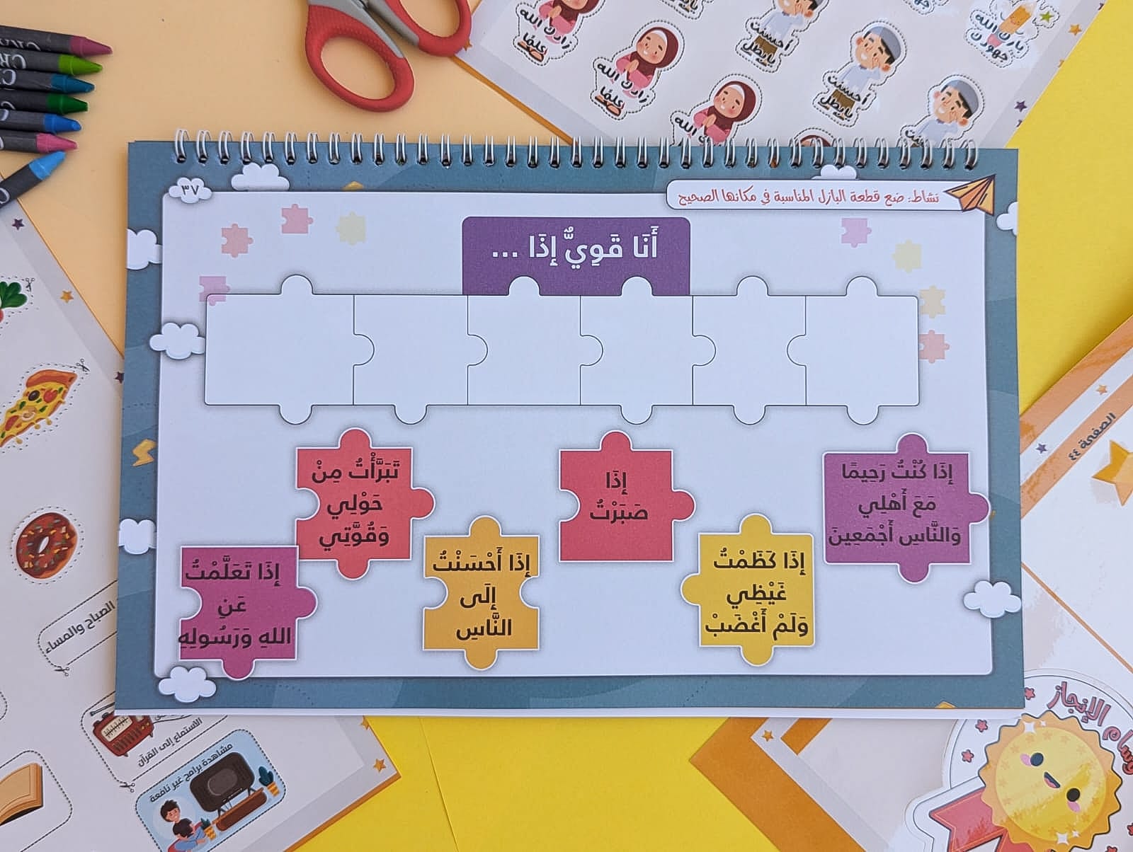مرفق فى نهاية الكتاب صفحتين إضافيتين لإستعمالهم في أنشطة قص ولصق داخل الكتاب.